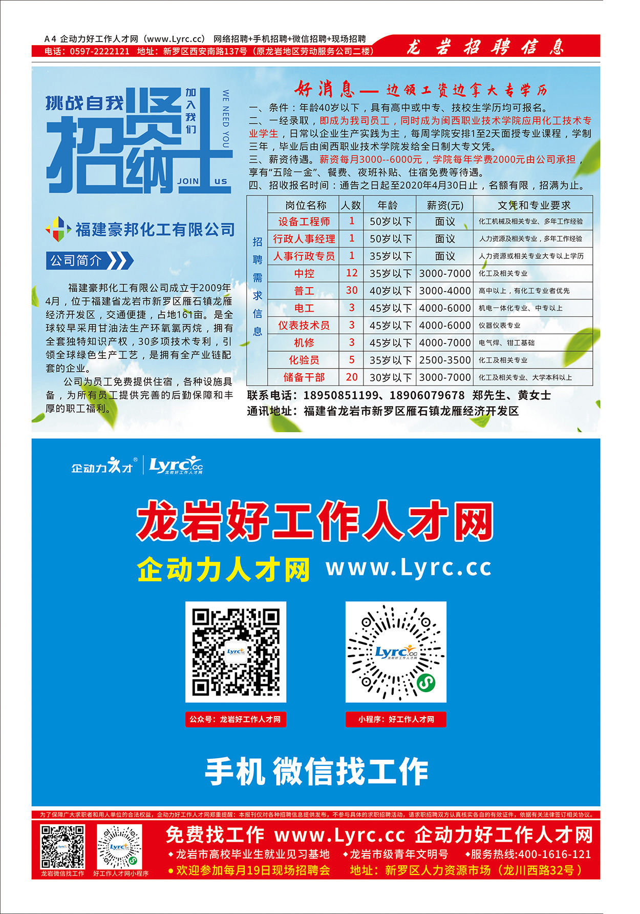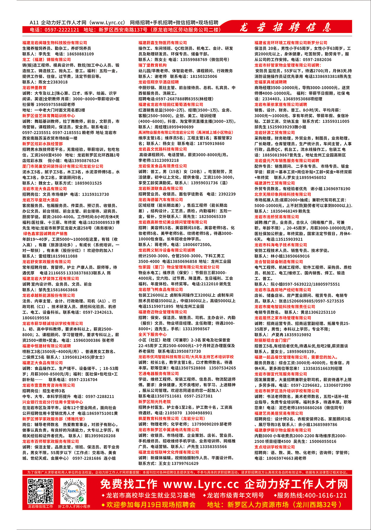 服務(wù)熱線:0597-2222121 全國人才服務(wù)熱線:400-1616-121 客服QQ: 企業(yè)交流群:148464179 信息監(jiān)督員:黃琳 不良信息舉報熱線:0597-2222121