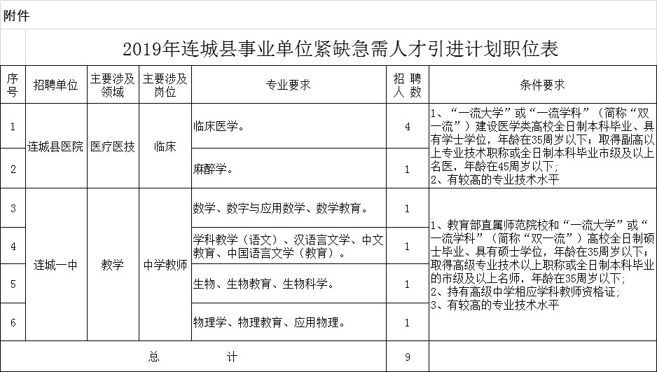 附件:《連城縣2019年事業(yè)單位緊缺急需人才引進(jìn)計劃職位表》
