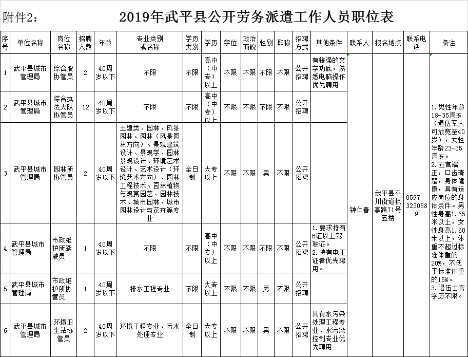 有關本次公開招聘勞務派遣人員相關信息將通過“武平縣人民政府網(wǎng)”(www.wp.gov.cn)、“武平網(wǎng)”(www.wuping.gov.cn)、“梁野黨旗紅”及用人單位微信公眾號公開發(fā)布,請報考者及時留意,不再另行通知。報考人員所留的聯(lián)系電話在公開招聘期間必須保持暢通,無法聯(lián)系造成影響公開招聘的后果由報考者自負。