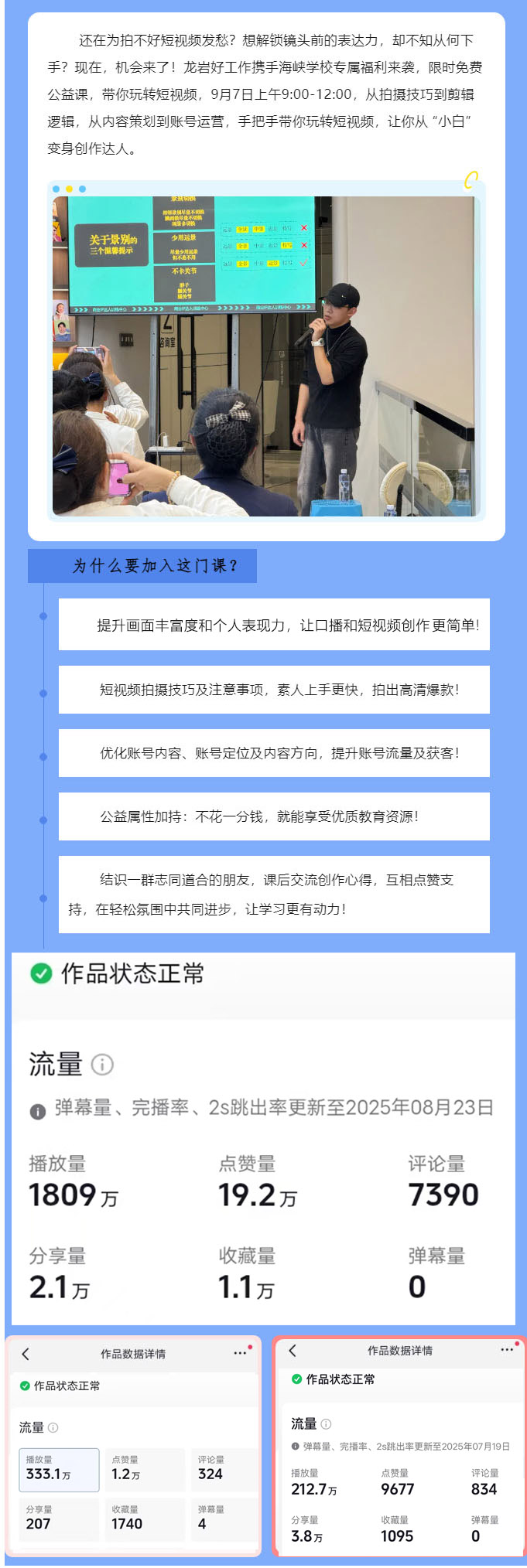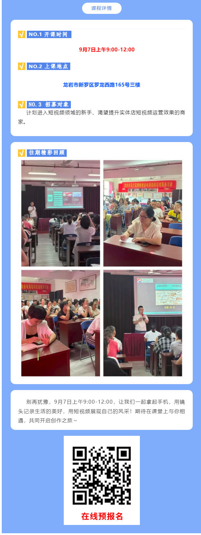 - 【9月7日開(kāi)課】千萬(wàn)播量達(dá)人分享實(shí)體同城獲客公益課,現(xiàn)場(chǎng)拆解短視頻拍剪視頻!速報(bào)名!
