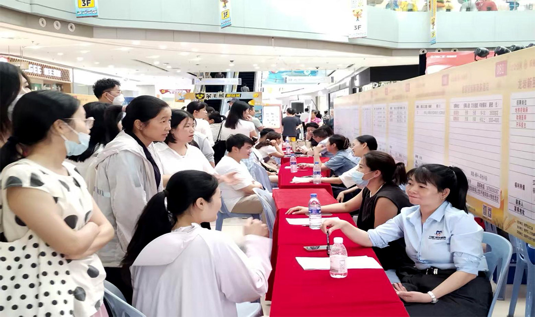 招聘會現(xiàn)場人頭攢動,求職與招聘的雙向奔赴在此上演。此次招聘會邀請了福龍馬集團(tuán)股份有限公司、福建龍凈高精設(shè)備制造有限公司 、龍工(福建)鑄鍛有限公司等106家優(yōu)質(zhì)企業(yè)到場,提供了1850個崗位,為現(xiàn)場求職帶來了豐富多樣的就業(yè)選擇,現(xiàn)場求職者或是仔細(xì)瀏覽招聘海報上的崗位信息,或是坐在招聘人員面前,初步了解企業(yè)及崗位信息。