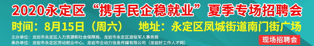 龍巖市永定區(qū)人力資源和社會保障局、龍巖市永定區(qū)退役軍人事務局 承辦單位:龍巖市永定區(qū)勞動就業(yè)中心、龍巖市企動力信息傳媒有限公司(龍巖好工作人才網(wǎng))