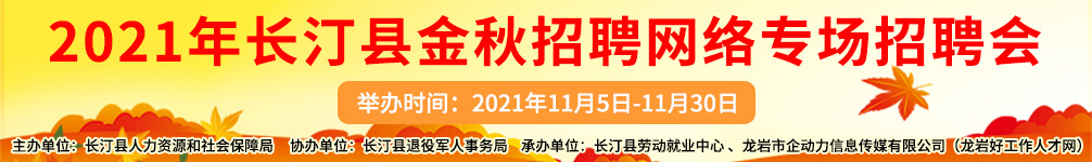 承辦單位: 長汀縣勞動(dòng)就業(yè)中心、龍巖市企動(dòng)力信息傳媒有限公司(龍巖好工作人才網(wǎng))