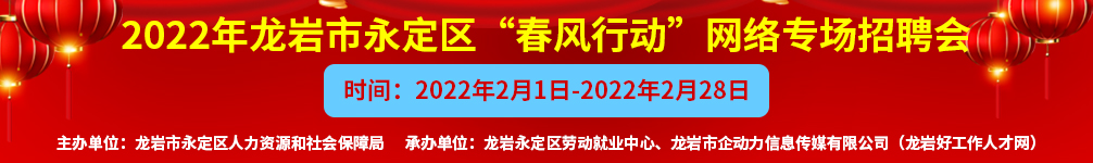 承辦單位: 永定區(qū)公共就業(yè)和人才服務(wù)中心,龍巖市企動(dòng)力信息傳媒有限公司(龍巖好工作人才網(wǎng))