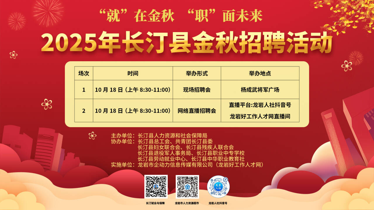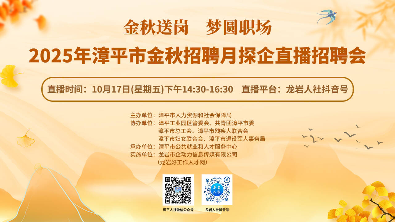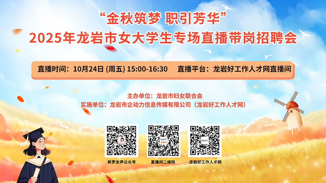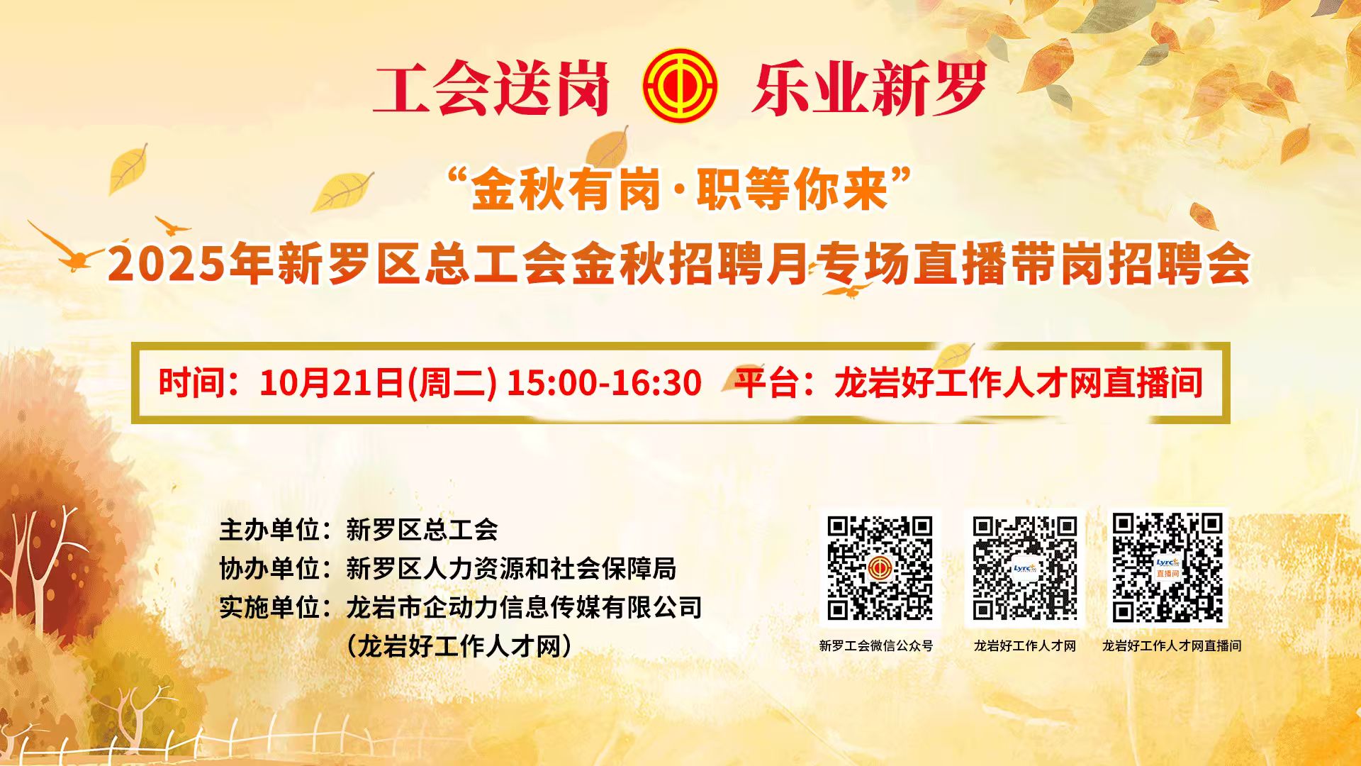 舉辦地點:龍巖人社抖音號 龍巖好工作人才網(wǎng)微贊直播間