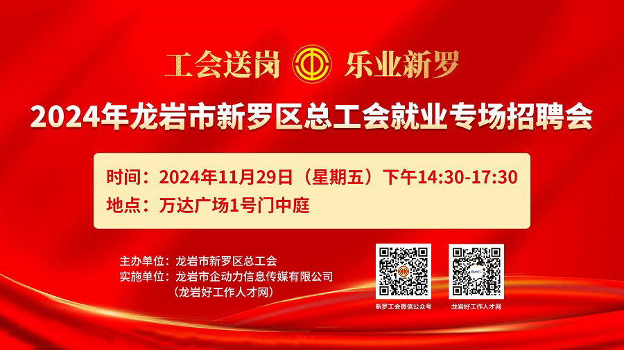 舉辦地點(diǎn):新羅區(qū)人力資源市場(chǎng)(龍川西路32號(hào))