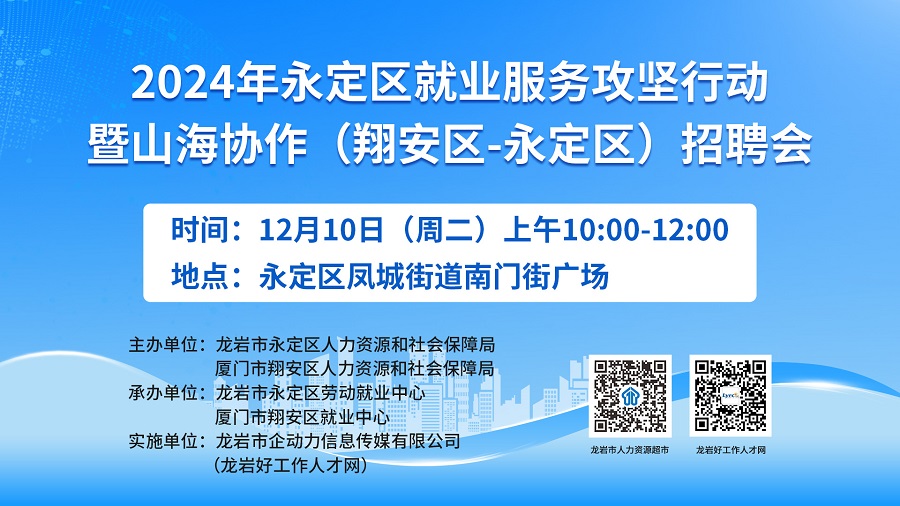舉辦單位:龍巖市永定區(qū)人力資源和社會(huì)保障局 廈門市翔安區(qū)人力資源和社會(huì)保障局