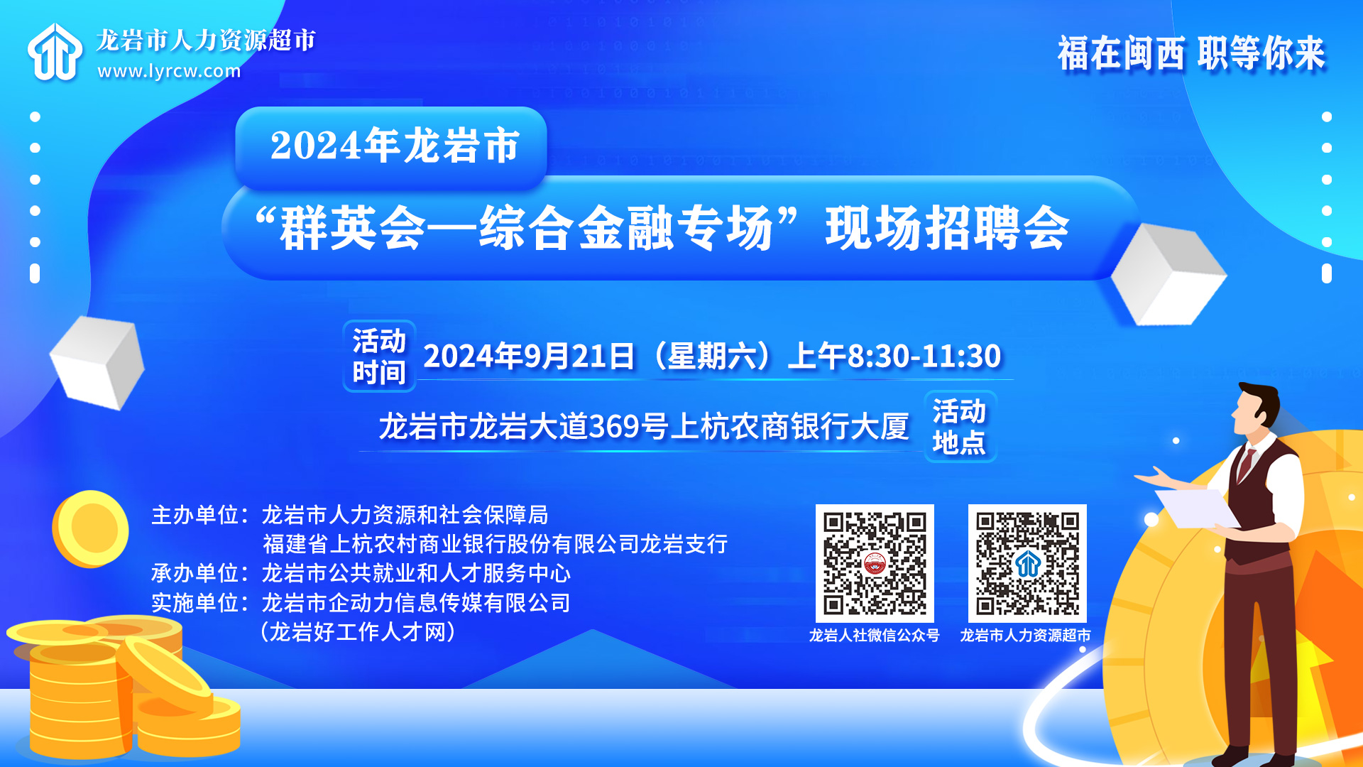 舉辦單位:龍巖市人力資源和社會(huì)保障局 福建省上杭農(nóng)村商業(yè)銀行股份有限公司龍巖支行