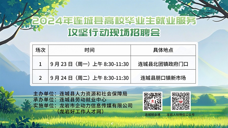 舉辦單位:連城縣人力資源和社會(huì)保障局