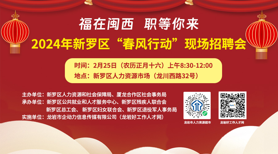 舉辦地點(diǎn):新羅區(qū)人力資源市場(龍川西路32號)
