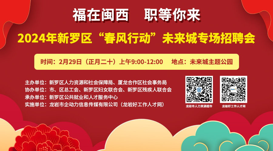 舉辦單位:新羅區(qū)人力資源和社會保障局 廈龍合作區(qū)社會事務(wù)局