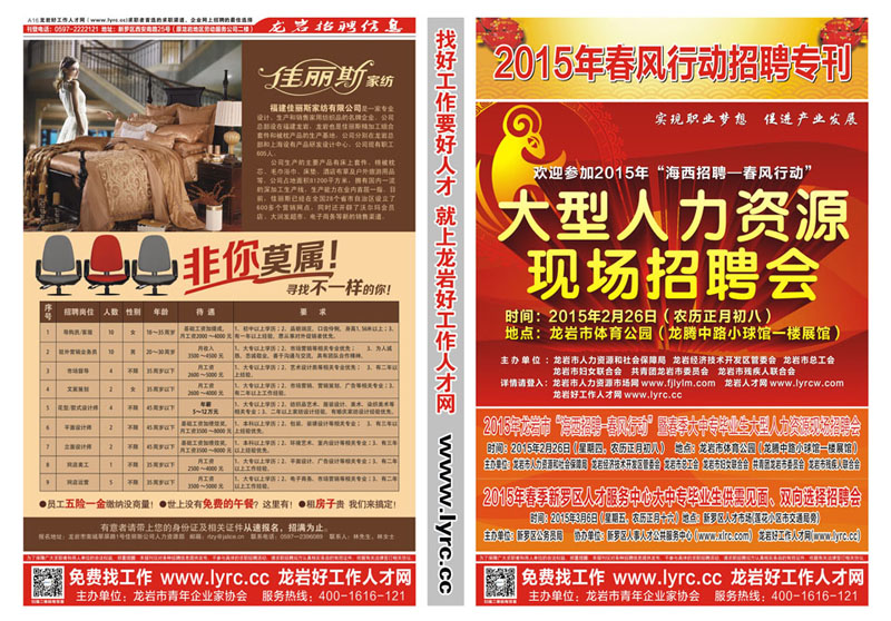 歡迎參加2016年2月15日正月初八龍巖體育公園“海西招聘—春風行動”大型招聘會