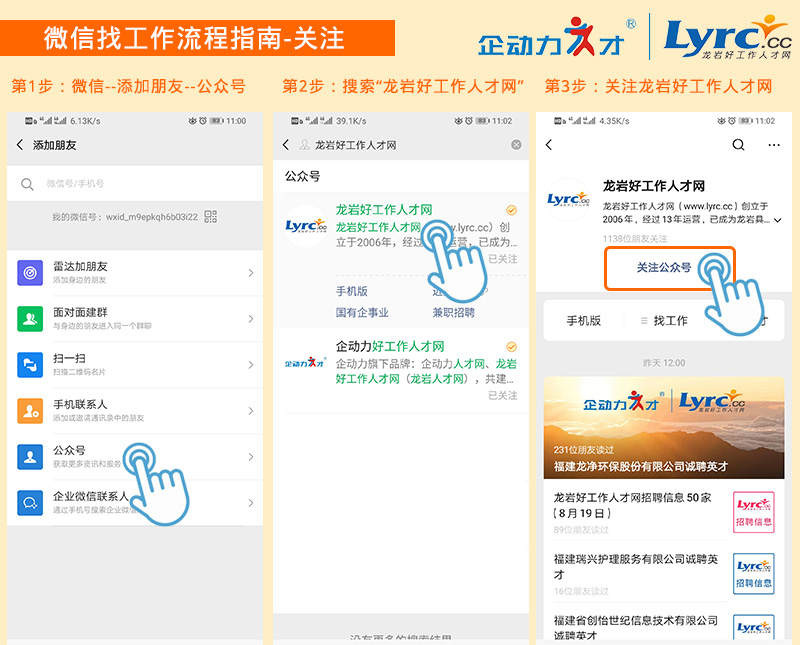 微信號:龍巖好工作人才網(wǎng) 微信ID:lyrc_cc 小程序:好工作人才網(wǎng)