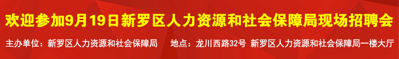 下一篇: 歡迎參加9月19日新羅區(qū)人力資源和社會(huì)保障局現(xiàn)場(chǎng)招聘會(huì)