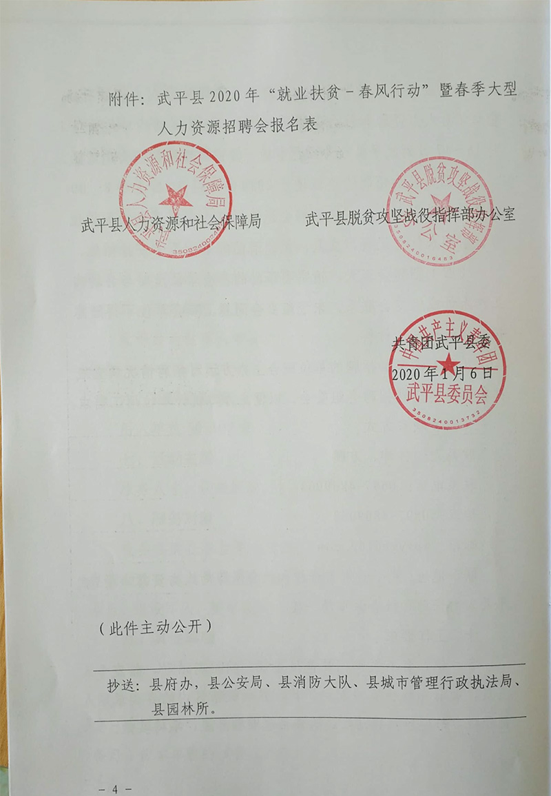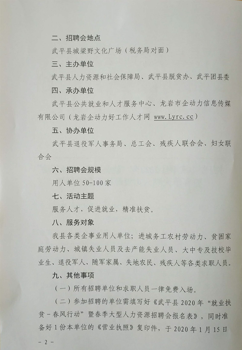 關于舉辦武平縣2020年“就業(yè)扶貧-春風行動” 暨春季大型人力資源招聘會的通知