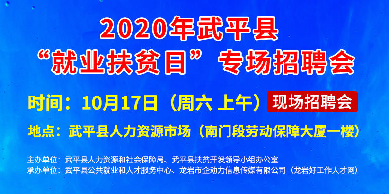 【10月17武平招聘會】2020年武平縣“就業(yè)扶貧日”專場招聘會
