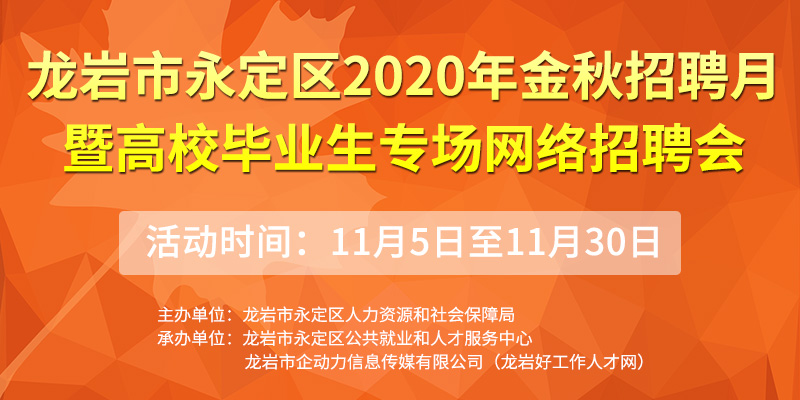 龍巖市永定區(qū)2020年金秋招聘月暨高校畢業(yè)生專場網(wǎng)絡(luò)招聘會