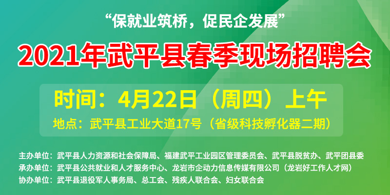 【承辦單位】武平縣公共就業(yè)和人才服務(wù)中心、龍巖市企動(dòng)力信息傳媒有限公司(龍巖企動(dòng)力好工作人才網(wǎng) m.onlinepeopleservices.com)