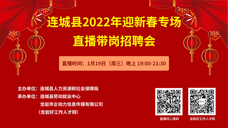 【直播回放】歡迎關注連城縣2022年迎新春專場直播帶崗招聘會