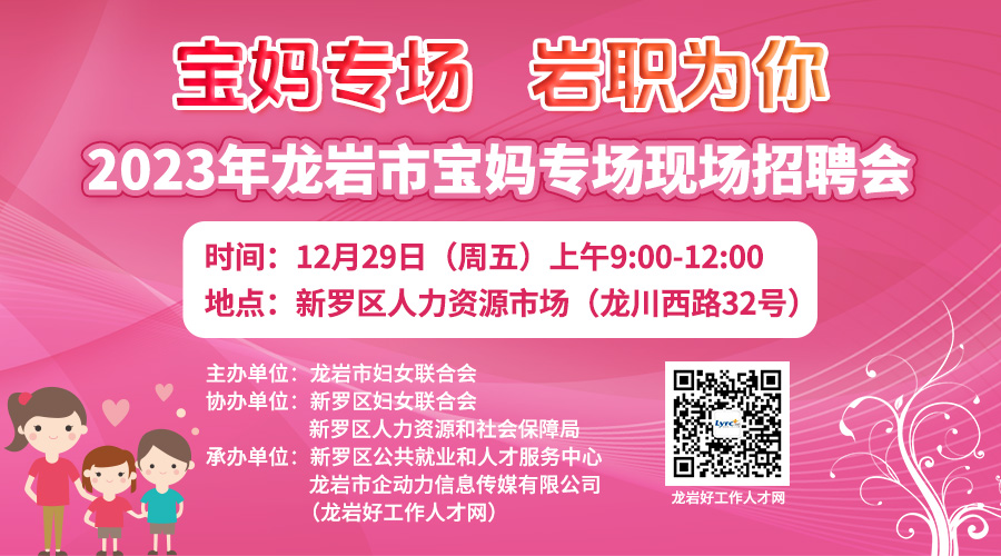 【12月29日】2023年龍巖市寶媽專場(chǎng)現(xiàn)場(chǎng)招聘會(huì)
