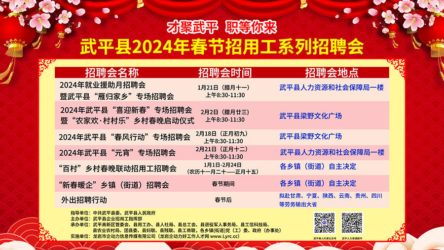 武平縣2024年春節(jié)招用工系列招聘活動公告