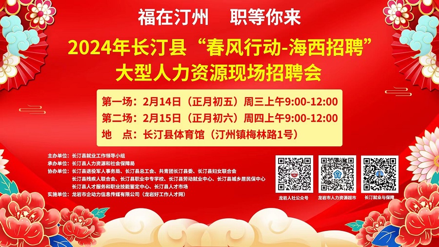 【正月初五、初六】2024年長汀縣“春風行動-海西招聘”大型人力資源現(xiàn)場招聘會