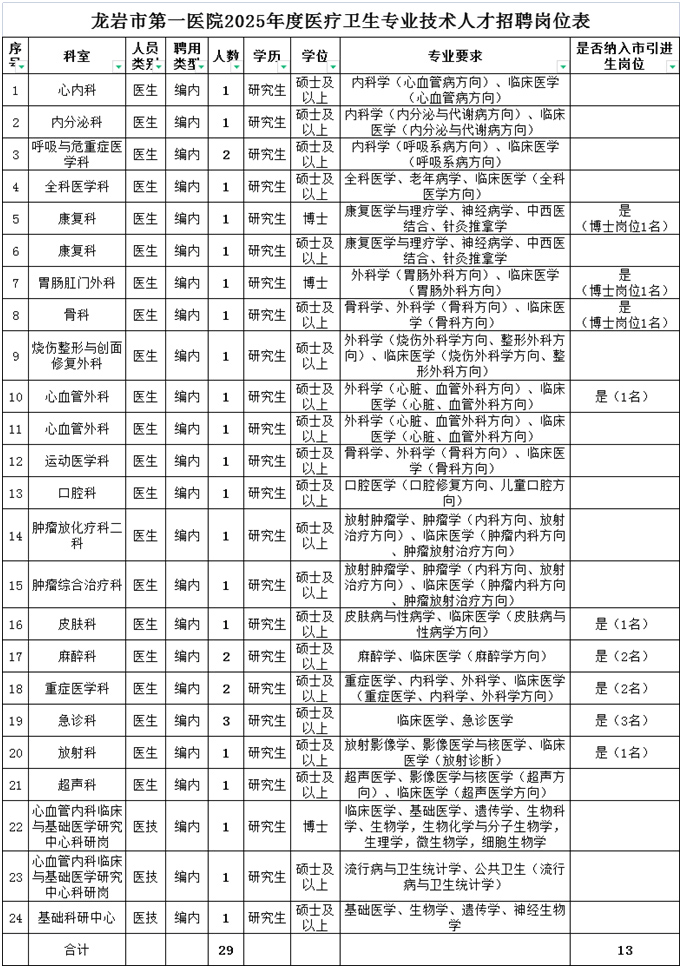 注:市引進(jìn)生崗位如無(wú)人員入選則納入醫(yī)院自主招聘。